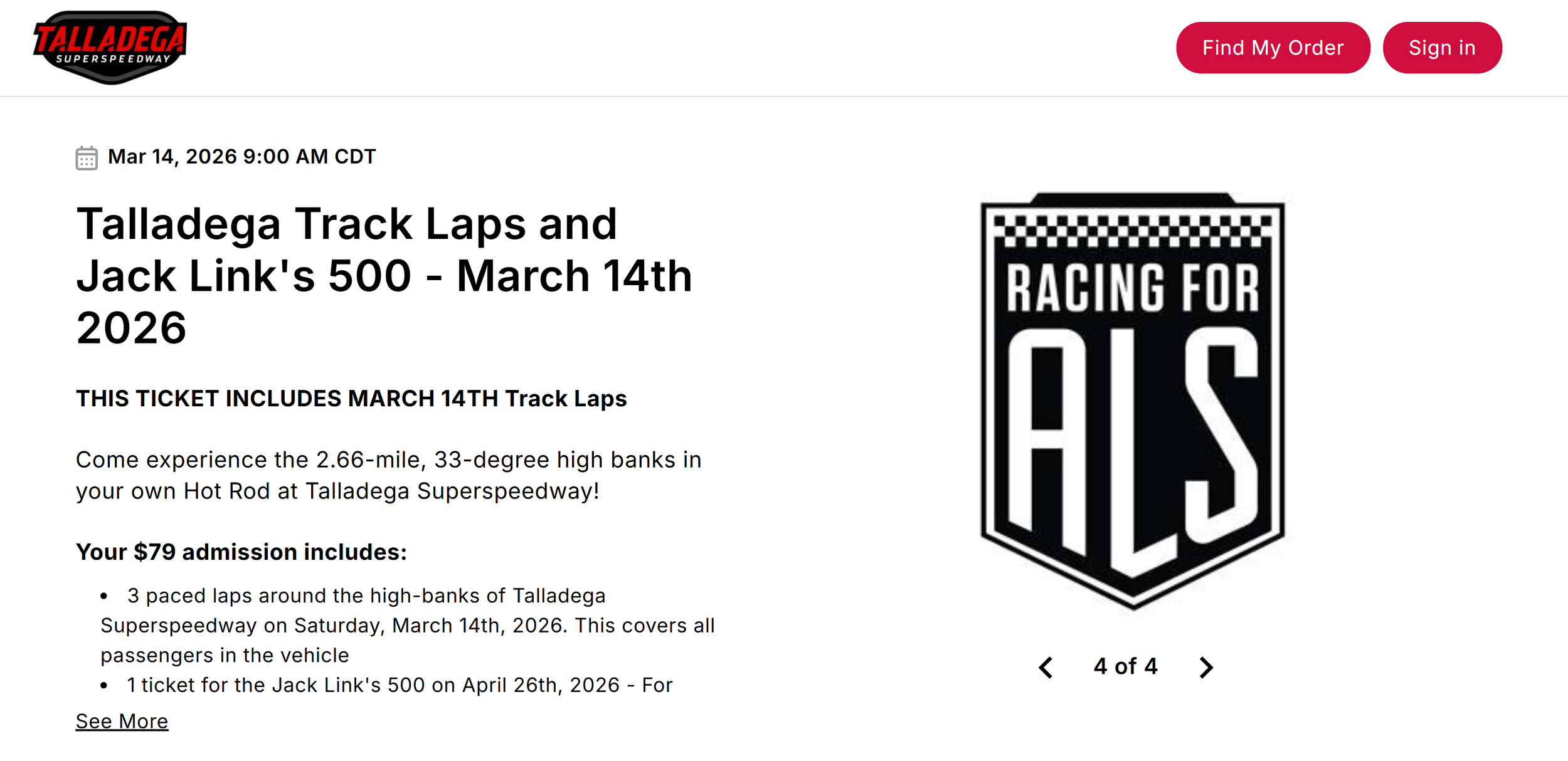 Click Here to Sign Up for Track/Charity Laps at Talladega Super Speedway on Sat., March 14, 2026, with a portion of the proceeds going to Racing for ALS!